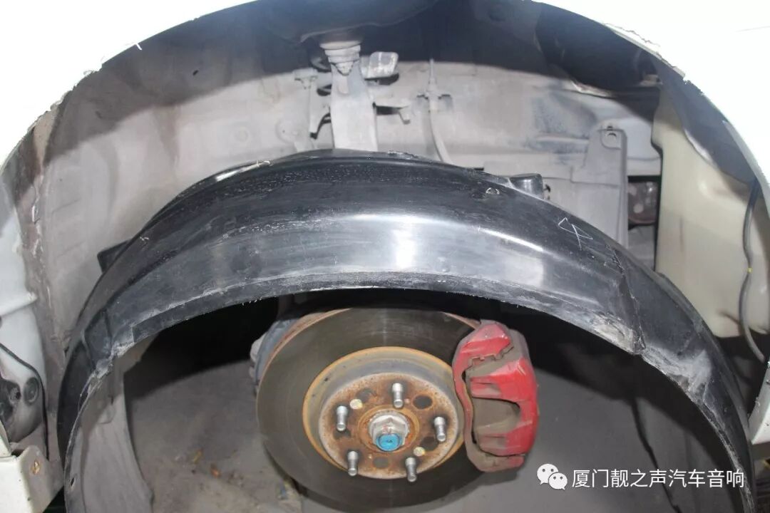 翼子板隔音操作步骤并不复杂,但是过程很麻烦。首先要分别将四个车轮拆卸下来,然后将轮眉内侧的翼子板挡板拆下,此时会露出轮眉内侧的钢板。 厦门两门隔音